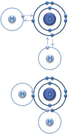 Covalent bonding of a water molecule